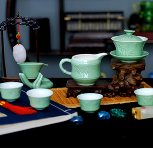 【竹】玉瓷浮雕茶具套装