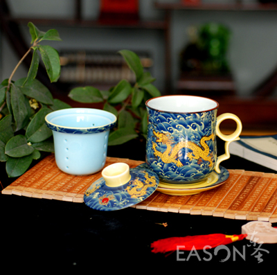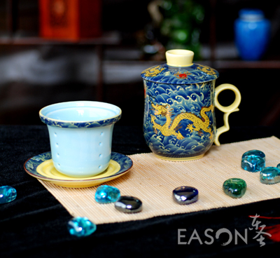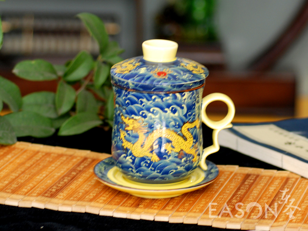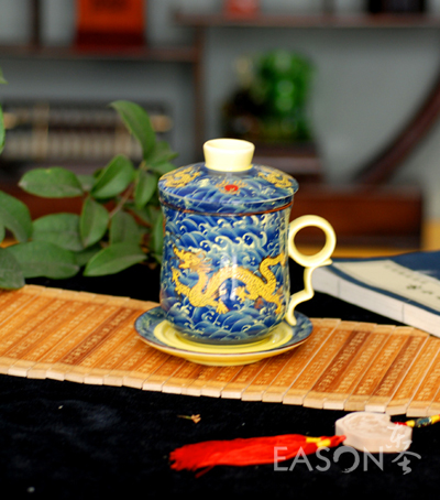 产品名称:【黄釉海浪金龙】四件套同心杯