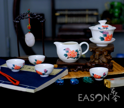 本套玉瓷茶具由艺术师潜心研制,精雕细琢而成,质地细腻致密、热稳定性好、高洁莹润、玉质雪肌,具有超强的透明度和光泽度,使产品的观感、手感不同一般,达到国际高级日用瓷的釉面标准,具有非凡的收藏价值,也逐渐成为馈赠亲友的佳品。