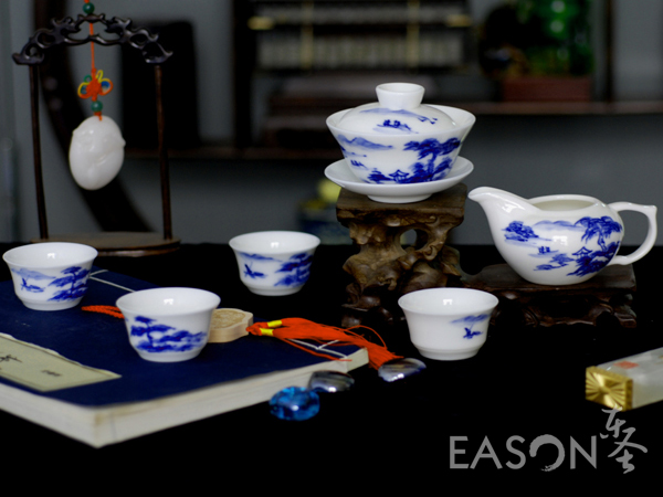 本套玉瓷茶具由艺术师潜心研制,精雕细琢而成,质地细腻致密、热稳定性好、高洁莹润、玉质雪肌,具有超强的透明度和光泽度,使产品的观感、手感不同一般,达到国际高级日用瓷的釉面标准,具有非凡的收藏价值,也逐渐成为馈赠亲友的佳品。