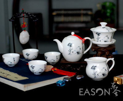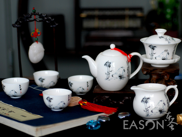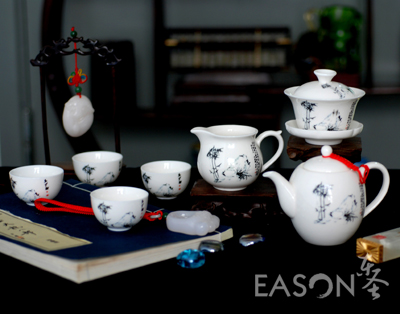 本套玉瓷茶具由艺术师潜心研制,精雕细琢而成,质地细腻致密、热稳定性好、高洁莹润、玉质雪肌,具有超强的透明度和光泽度,使产品的观感、手感不同一般,达到国际高级日用瓷的釉面标准,具有非凡的收藏价值,也逐渐成为馈赠亲友的佳品。