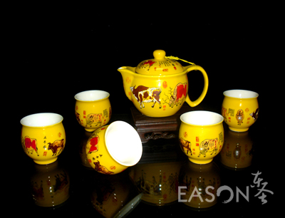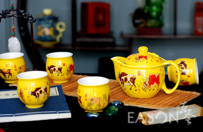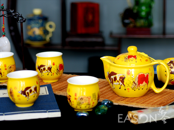 产品名称:【五彩神牛】黄瓷茶具套装