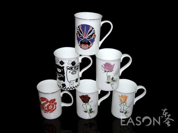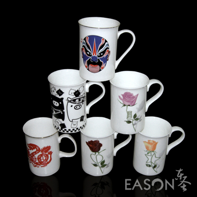 东圣陶瓷可根据客户需要,专案设计定做陶瓷马克杯及广告促销礼品杯: