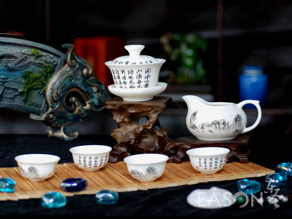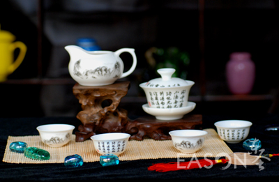 本套玉瓷茶具由艺术师潜心研制,精雕细琢而成,质地细腻致密、热稳定性好、高洁莹润、玉质雪肌,具有超强的透明度和光泽度,使产品的观感、手感不同一般,达到国际高级日用瓷的釉面标准,具有非凡的收藏价值,也逐渐成为馈赠亲友的佳品。