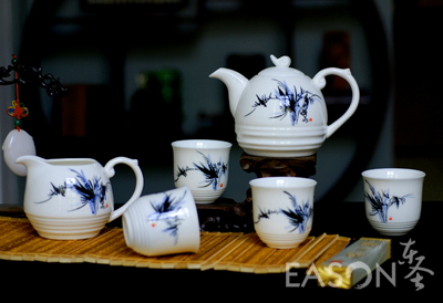 本套玉瓷茶具由艺术师潜心研制,精雕细琢而成,质地细腻致密、热稳定性好、高洁莹润、玉质雪肌,具有超强的透明度和光泽度,使产品的观感、手感不同一般,达到国际高级日用瓷的釉面标准,具有非凡的收藏价值,也逐渐成为馈赠亲友的佳品。