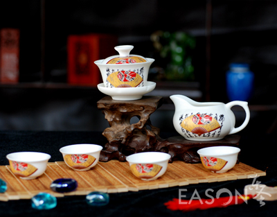 本套玉瓷茶具由艺术师潜心研制,精雕细琢而成,质地细腻致密、热稳定性好、高洁莹润、玉质雪肌,具有超强的透明度和光泽度,使产品的观感、手感不同一般,达到国际高级日用瓷的釉面标准,具有非凡的收藏价值,也逐渐成为馈赠亲友的佳品。