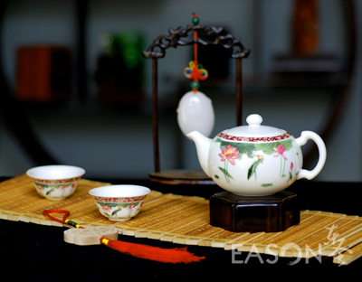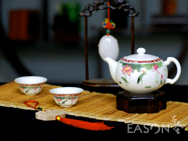 本套玉瓷茶具由艺术师潜心研制,精雕细琢而成,质地细腻致密、热稳定性好、高洁莹润、玉质雪肌,具有超强的透明度和光泽度,使产品的观感、手感不同一般,达到国际高级日用瓷的釉面标准,具有非凡的收藏价值,也逐渐成为馈赠亲友的佳品。
