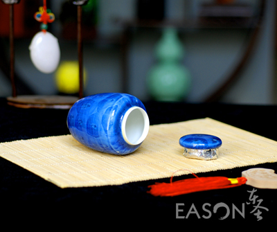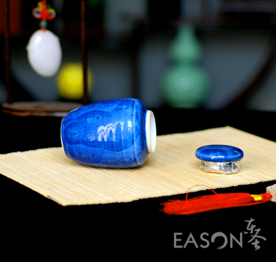 陶瓷冰裂釉是经过与玻璃等原料巧妙地组合与烧制后,能产生自然的冰裂现象,使产品更具立体浮雕感,其自然的冰裂纹线,玲珑剔透的色泽,耀眼闪烁的光芒是各种陶瓷釉料所无法相比的,其艺术效果更好,观赏性更强。而且是高温烧制,无毒无铅,是国外,特别是日本韩国争相下订的一个瓷品工艺。但是其工艺废品率非常高!一窑收成不到半窑都有过!每个成品都是得之不易的。